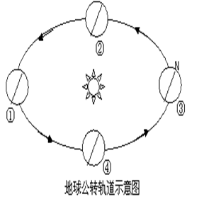 ⑷ 该日,地球位于地球公转轨道图中的 位置(填序号)。此时,地球公转速度较 (快或慢)。