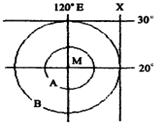 3、综合题 (13分)该图是局部区域经纬网及太阳高度等值线(A和B)示意图,读图回答下列问题: