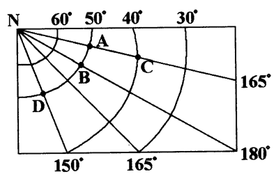 (2)A、B、C三点位于 (东、西)半球,D点位于 (南、北)半球。