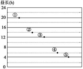 5、单选题 若图示为某日①②③④⑤五地的昼长状况,则五地中( )