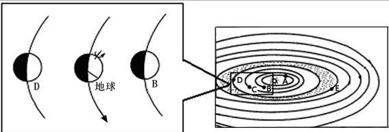(2)八大行星绕日公转有同向性,即都是自______向______。请在图中地球的公转轨道上用箭头表示出来。(2分)
