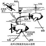 1、单选题 海流发电是依靠海流的冲击力使水轮机旋转,然后再带动发电机发电。目前海流发电站通常浮在海面上,用钢索和锚加以固定。读图完成题。