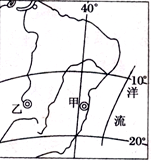 1.图示地区洋流的性质与乙地的气候类型分别是2.与甲地气候类型的形成无关的是