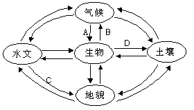 2、综合题 读陆地环境各要素的相互关系图,完成下列各题。