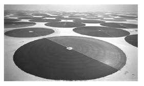 4、单选题 下图所示为沙特阿拉伯沙漠中的灌溉农业景观图,完成下列各题