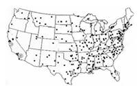 4、单选题 该图是美国本土某种生产厂的分布图,读图并结合所学地理原理回答问题。