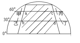 2、单选题 读右图,回答题。1.甲、乙、丙、丁洋流流向及对沿岸气候影响正确的是2.a、b、c、d气候特征叙述错误的是