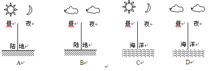 本题解析:昼夜温差最大的是晴天的陆地;昼夜温差最小的是阴天的海洋。温差大小取决于大气状况和近地面性质。