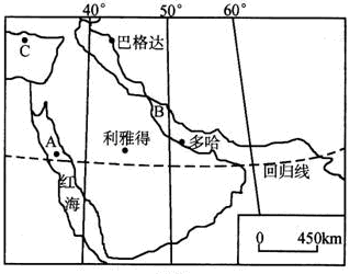 (3)图示该纬度的大陆西岸均为热带沙漠气候;故有3处。