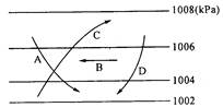 5、单选题 读“近地面的等压线”图,回答下列问题。