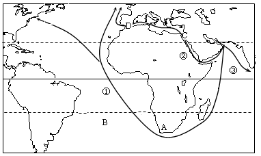 (1)图中航线①②③都是石油运输线,航线①从波斯湾开始,经过印度洋、非洲南端的A________角、B________洋,到达北美和西欧。