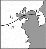 小题1:图为该天气系统略图,其中M是不同性质锋面L1、L2的交界,有关锋面L1、L2性质的判断正确的是