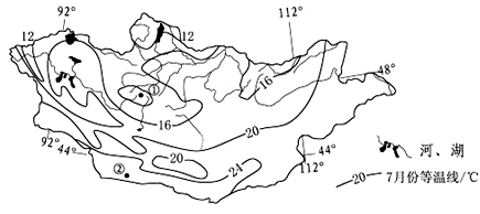 4、单选题 该图示意亚洲某内陆国水系分布和七月份气温分布情况。读图完成问题。