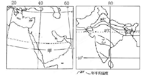 参考答案:(1)甲半岛:没有常年有水的河流,为无流区(1分);乙半岛: