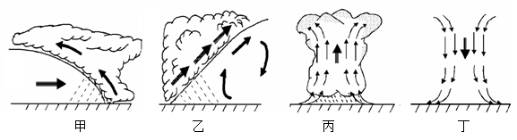 2010年7月7日上午9时到11时,我国东部某区域冷暖气团相遇,冷气流多次东移,暖湿气流被迫抬升遇冷凝结降水。在短短数小时内降水超过100mm,河水暴涨,水库溃坝。城市道路积水,交通大范围阻塞。(如图甲)