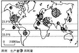 3、综合题 读“世界石油生产及消费分布示回答问题