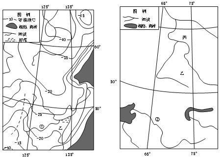 提示:图1为我国东北与俄罗斯东西伯利亚,图2为中亚与西西伯利亚。