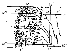 本题解析:小题1:本题考查欧洲西部地理环境的特点。根据图中的经纬度6°E-10°E和50°N-62°N和该地的海陆轮廓判断该地为斯堪的纳维亚半岛,斯堪的纳维亚半岛西侧海岸海岸线曲折,多峡湾,主要是由于冰川侵蚀造成的。所以本题选择D选项。