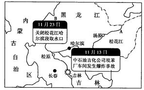 2005年11月13日,中石油吉化公司双苯厂车间发生 爆炸事故,造成大约100吨苯类污染物注入松花江,造成松花江吉林市以下河段严重污染,11月25日,松花江污染水 跨界入俄,造成俄罗斯水域污染。