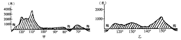 1、单选题 读两个国家的地形剖面图,甲剖面线为55oN,?乙剖面线为23o26?S,下列关于两国的正确叙述是