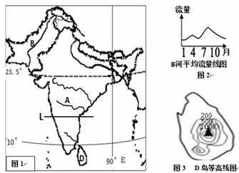(5)图1中D岛人口分布南稠北稀,结合图1和图3分析其南部人口稠密的自然原因(3分)