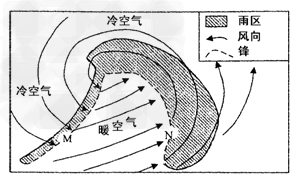 (2)由上问可知,此时为我国夏季,东南沿海盛行东南季风;热带气旋中心为低气压,盛行上升气流,呈逆时针方向辐和。