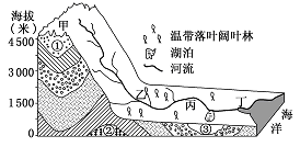 (4)由于人口增长,图中乙处森林正在被日益扩大的耕地所取代.简述这一现象的发生对当地气候或河流水文特征产生的影响(任选其一回答).(2分)