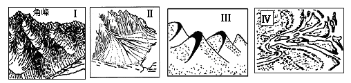 1.关于图示地区地质、地貌的叙述正确的是2.图中甲、乙、丙、丁四处可能形成的地貌与下列四幅图配对正确的是