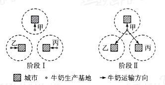 1.从图中看出阶段Ⅰ的牛奶生产基地形成的主要区位因素是2.可能引起上述牛奶生产布局变化的原因是