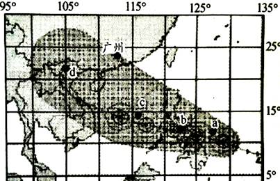 【小题1】台风“海燕”中心(台风眼)位于b地时,下列地点情况正确的是: