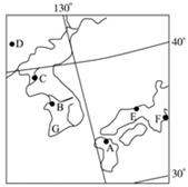 B、E地冬季降水量比F地多,主要原因是位于盛行风的迎风坡