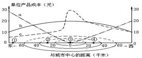 1.表示土地成本、运费、劳动力成本的曲线依次是2.综合考虑土地、运输、劳动成本,该工业部门应布局在3.造成图中②、④两地土地成本差异的主要因素是