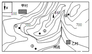 【小题2】肯定既能看到甲村又能看到乙村的地点是( )
