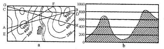 3、单选题 下面的地形剖面图(图b)是根据等高线地形图(图a)中的哪条剖面线画出的?