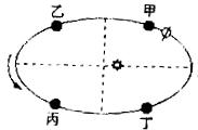 【小题3】地球从甲处经乙、丙、丁再回到甲公转一周(甲、乙、丙、丁之间等距),四段之间用时最少的是( )