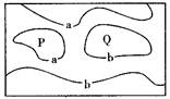 2、单选题 读“等高线示意图”,已知a<b,回答下列各题。