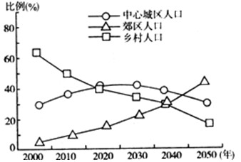 D、2050年中心城区人口数量与2000年相等