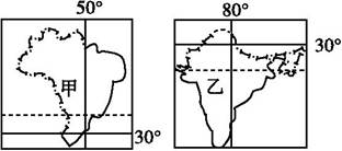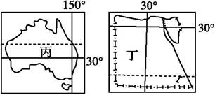 本题解析:试题分析:小题1:根据轮廓和位置可以判断,甲为巴西,乙为印度,丙为澳大利亚,丁为埃及。巴西虽然有回归线穿过,但受地形和洋流的影响,没有形成沙漠气候,而是以热带雨林气候和热带草原气候为主。