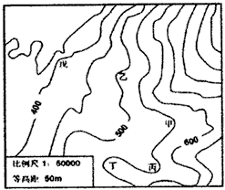 3、单选题 下图是北半球中纬度某地区的地形图,读图回答1~2题。
