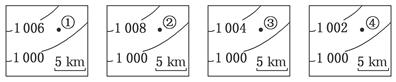 5、单选题 在下面四幅等压线分布图中,①②③④四地风力由大到小的正确排序是( )