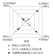 2、单选题 下图十一我国四个地区各类耕地所占比例(2013年12月30日统计)。读图,完成下列小题。