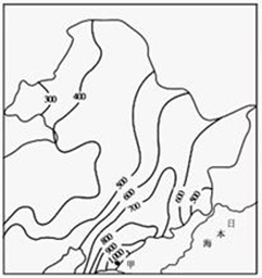 1、单选题 读东北地区年降水量分布图(单位:mm),完成11~14题。