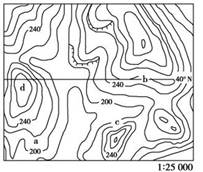 本题解析:试题分析:a处坡缓,较为平坦;b处等高线向高处突出,为一沟谷地带,夜间如果有降水,宿营安全将受到威胁;c处等高线过于密集,坡陡,不适合宿营;d处于山顶上,气温太低了,不适合宿营,综合分析选A。