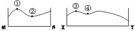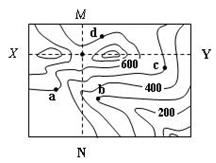 1.图中a、b、c、d四点中,最容易发育成河流的是2.图中MN、XY的交点,在剖面图(下图)中是