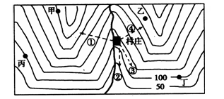 【小题2】若村庄所在的山谷发生泥石流,则村民选择正确的逃生路线是( )