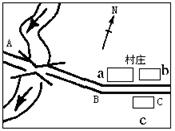 (3)村庄b在村庄a的?????方;村庄c分别在村庄a、b的???????方和???????方。