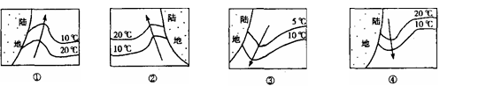 1、单选题 下列的四幅图中.正确表示北半球寒流的是