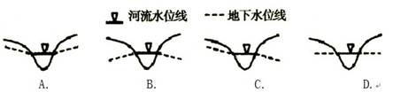 此时甲地地下水和河水的互补关系最有可能是下图中的(???)