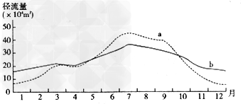 3、单选题 下图中a,b曲线表示某条河流不同年代的径流量变化情况,下列叙述正确的是??