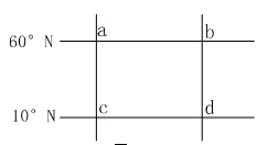 5、单选题 &nb sp;下图中aC.bd为两条经线,它们与两条纬线共同组成一个方形区域,若aC.bd两条经线的度数分别为80°E、80°W,读图回答下列各题。